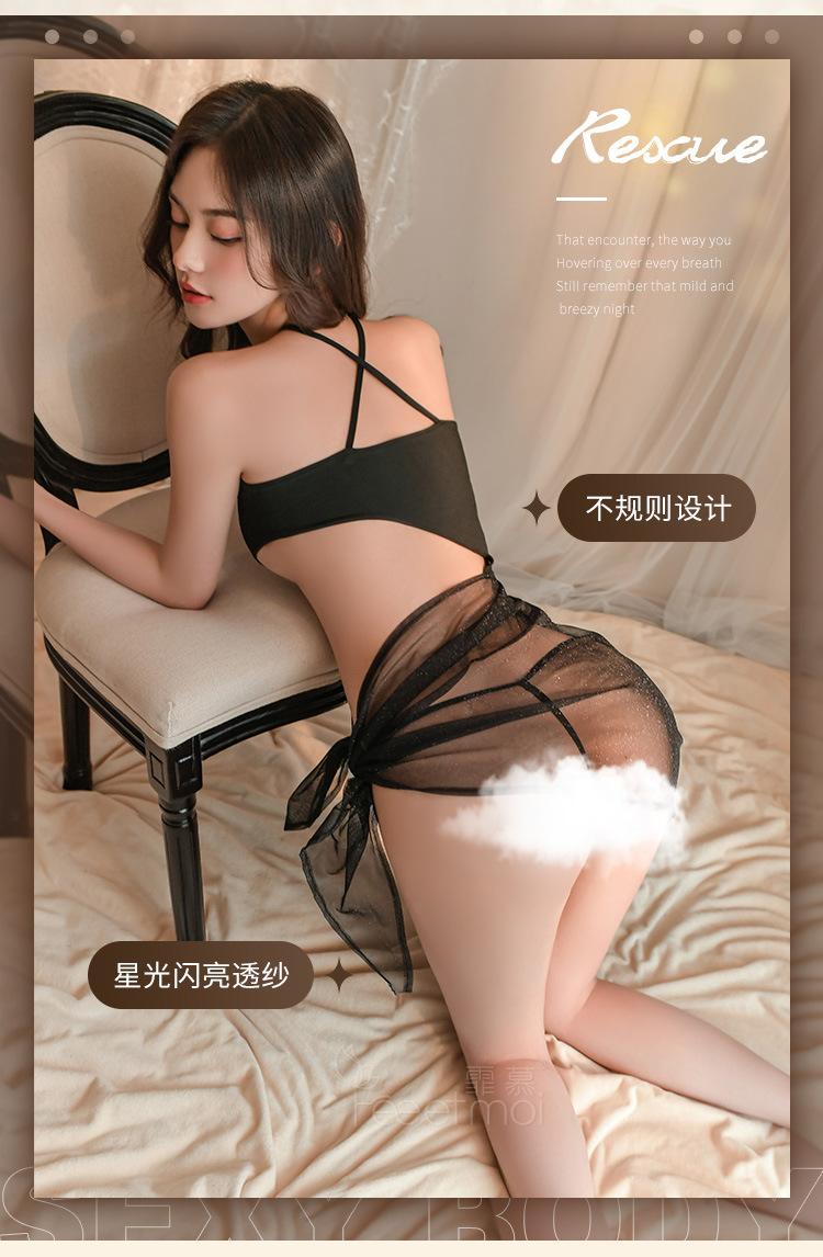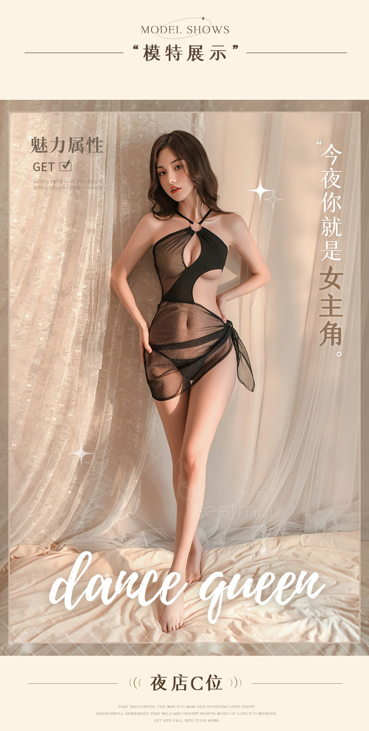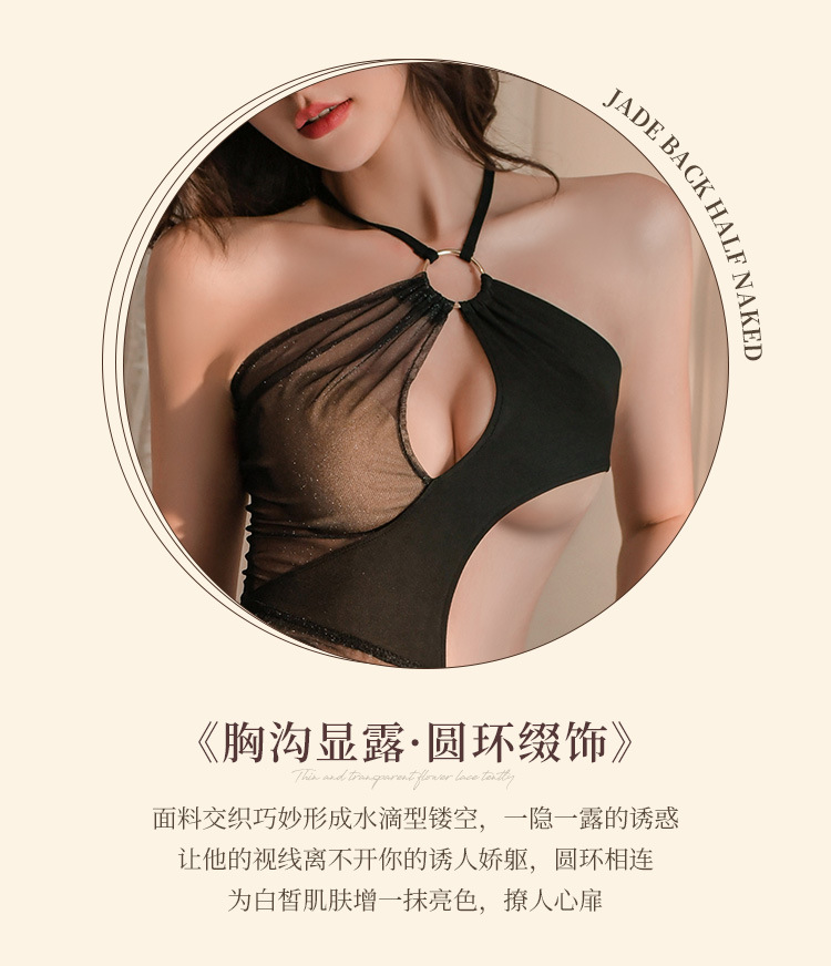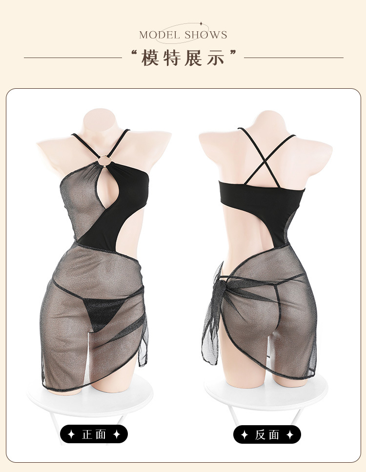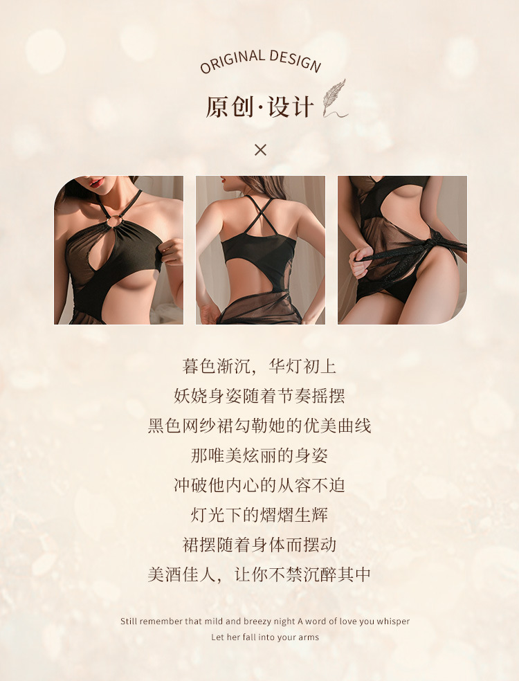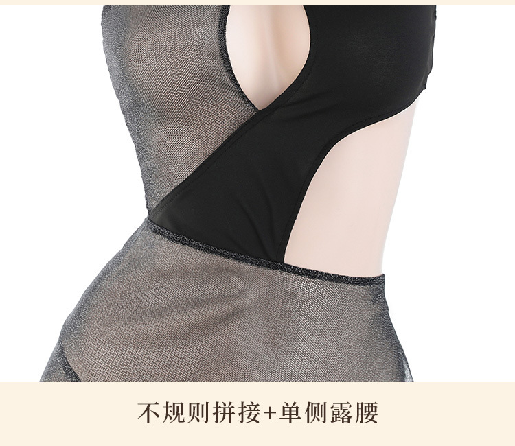 心机镂空不规则风情纱裙 胸部水滴镂空 亮丝透纱