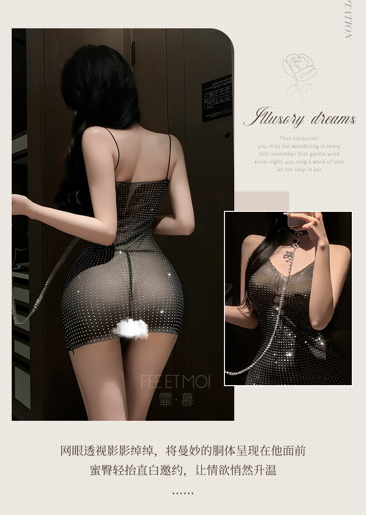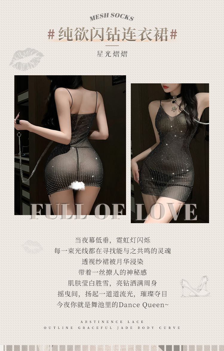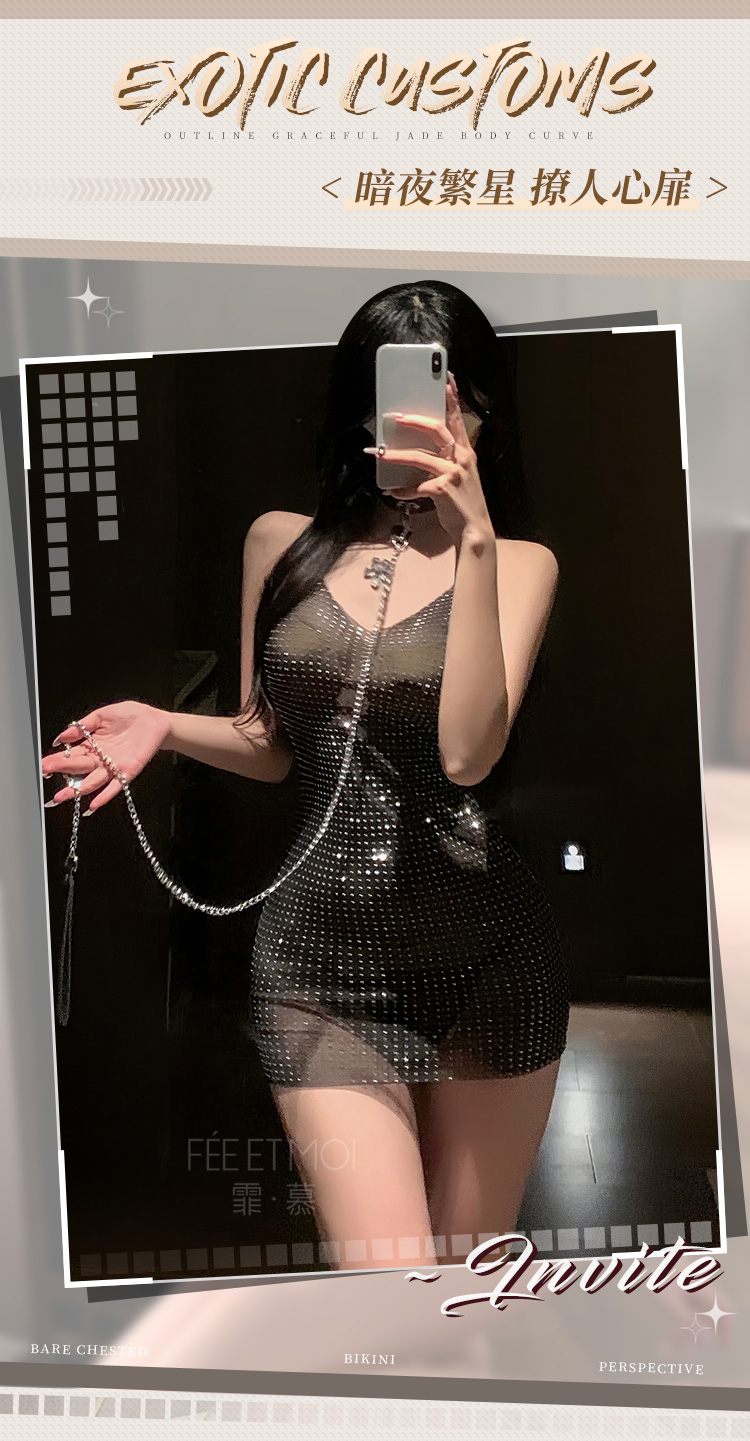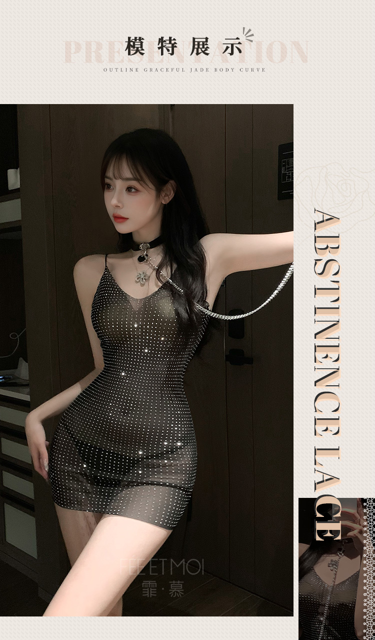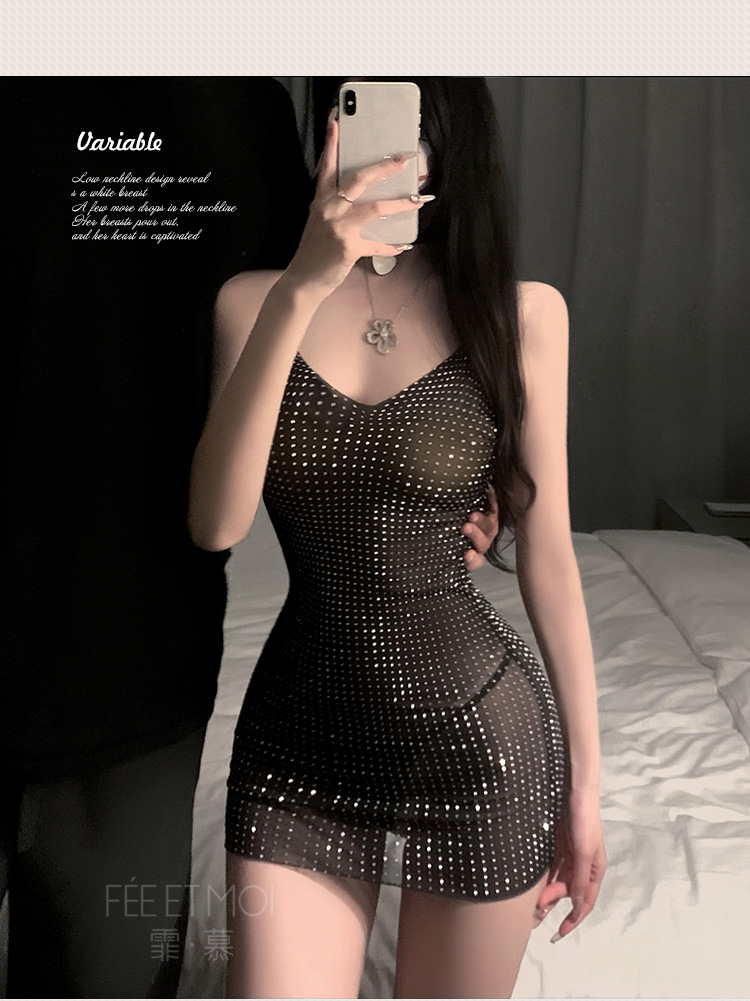深V露沟透视烫钻包臀连衣裙 性感纯欲
