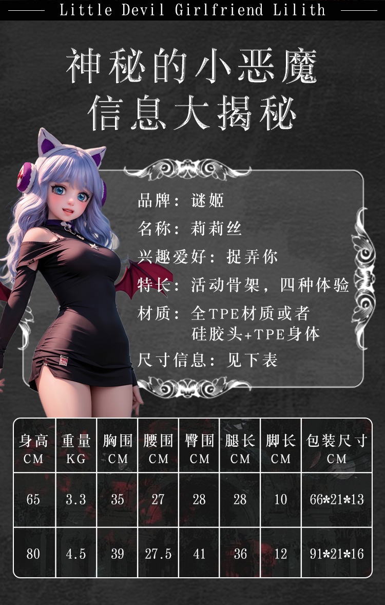 动漫实体小娃娃小恶魔莉莉丝80cm 软心乳房 活动骨架
