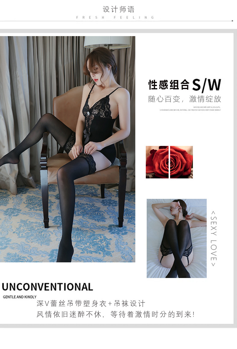 深V蕾丝吊带修身网衣吊袜套装 火辣吸睛 性感诱惑