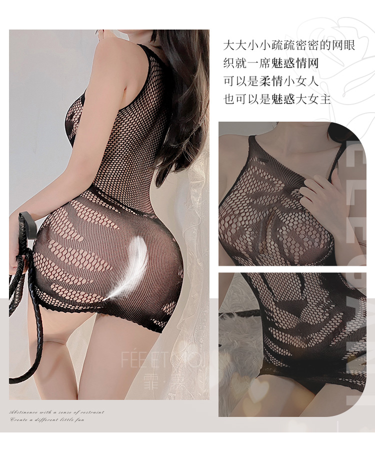 虎面提花网眼镂空包臀裙 弹力镂空 狂野神秘