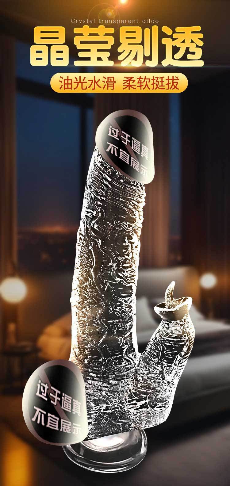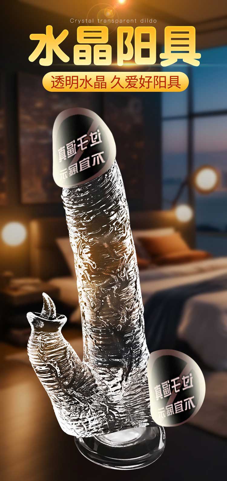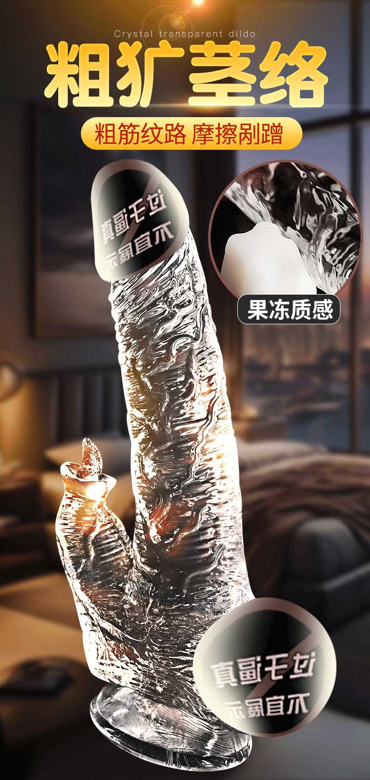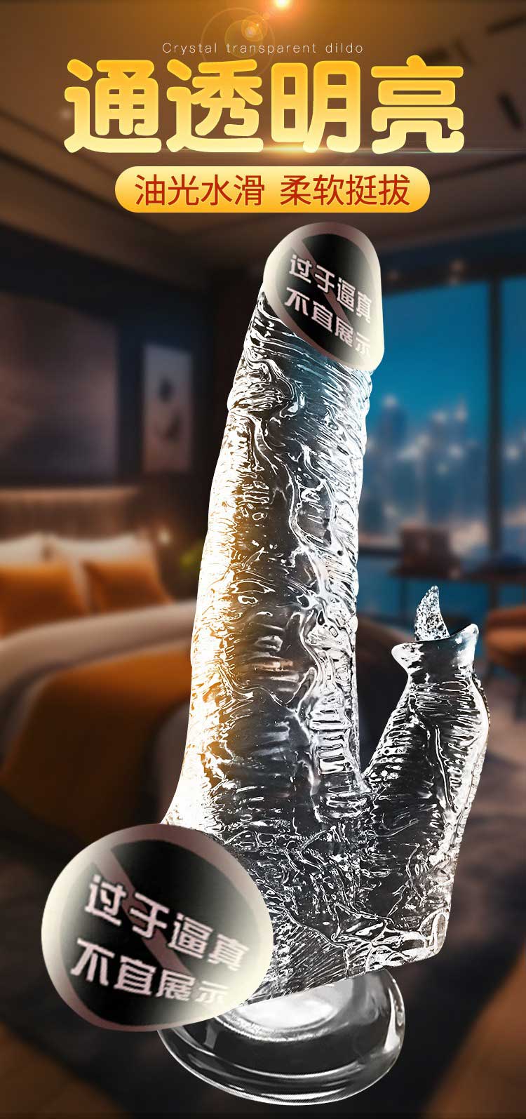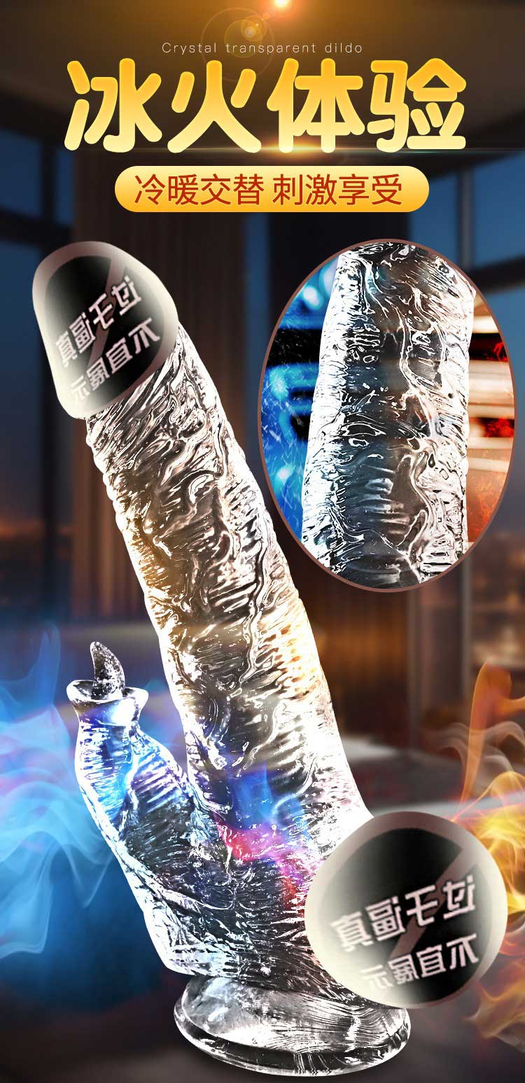 仿真手动水晶透明阳具 水滑通透 柔软舒适