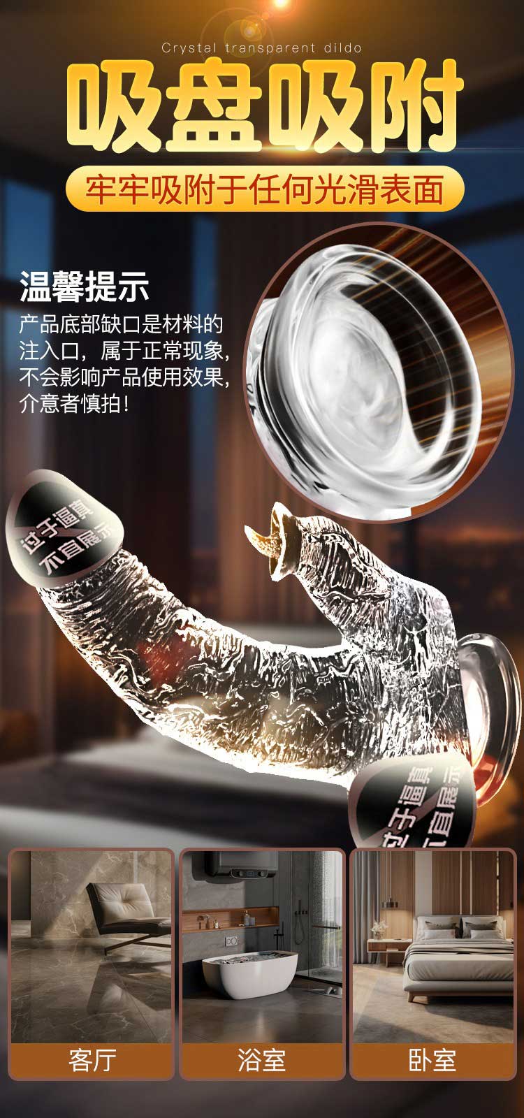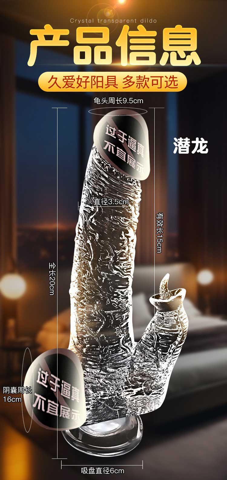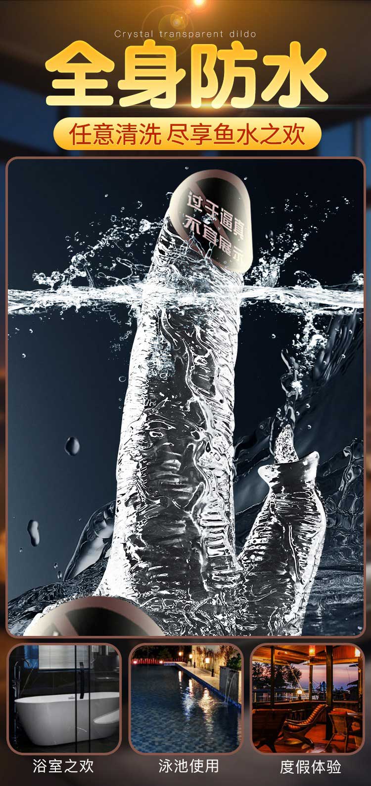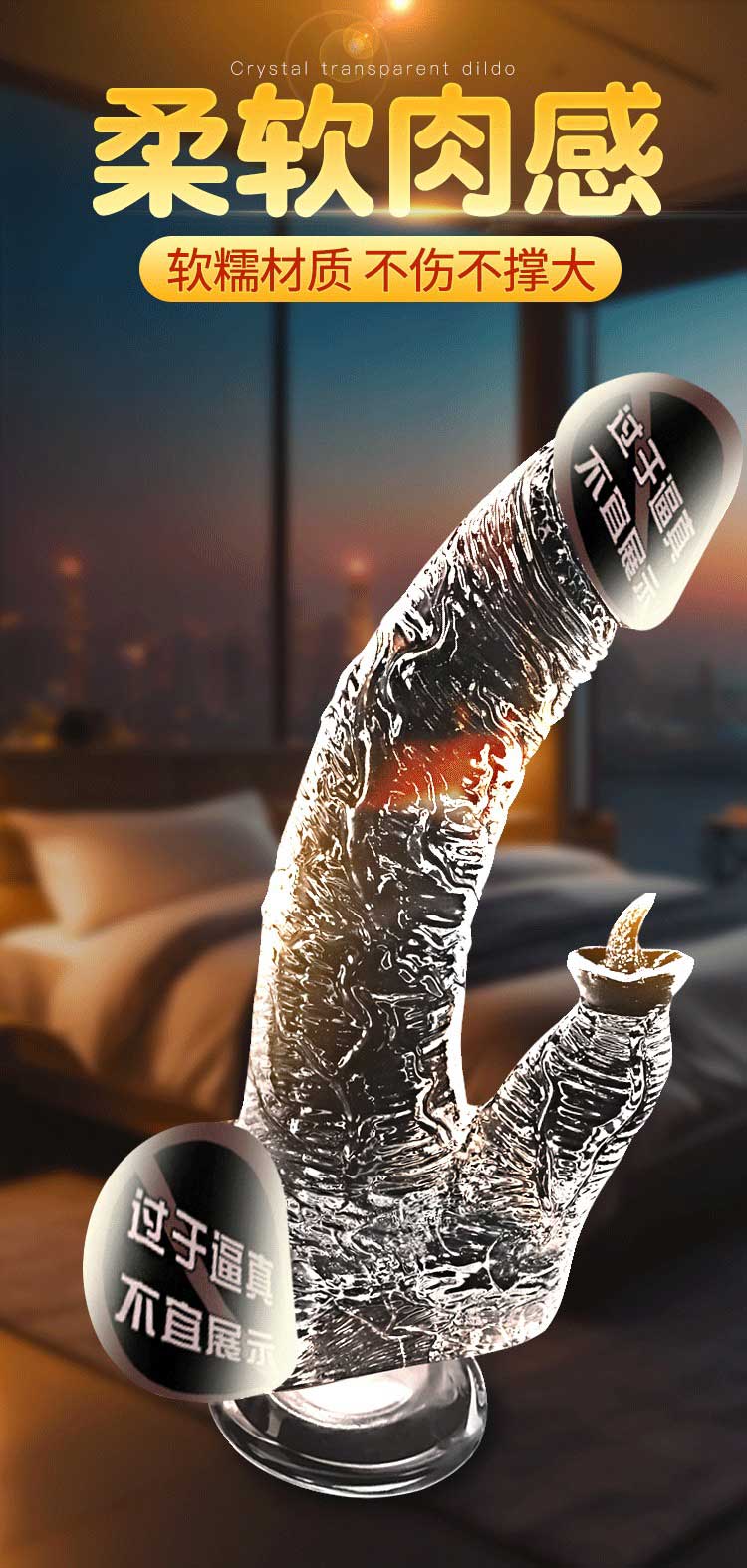 仿真手动水晶透明阳具 水滑通透 柔软舒适