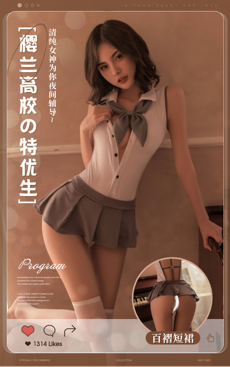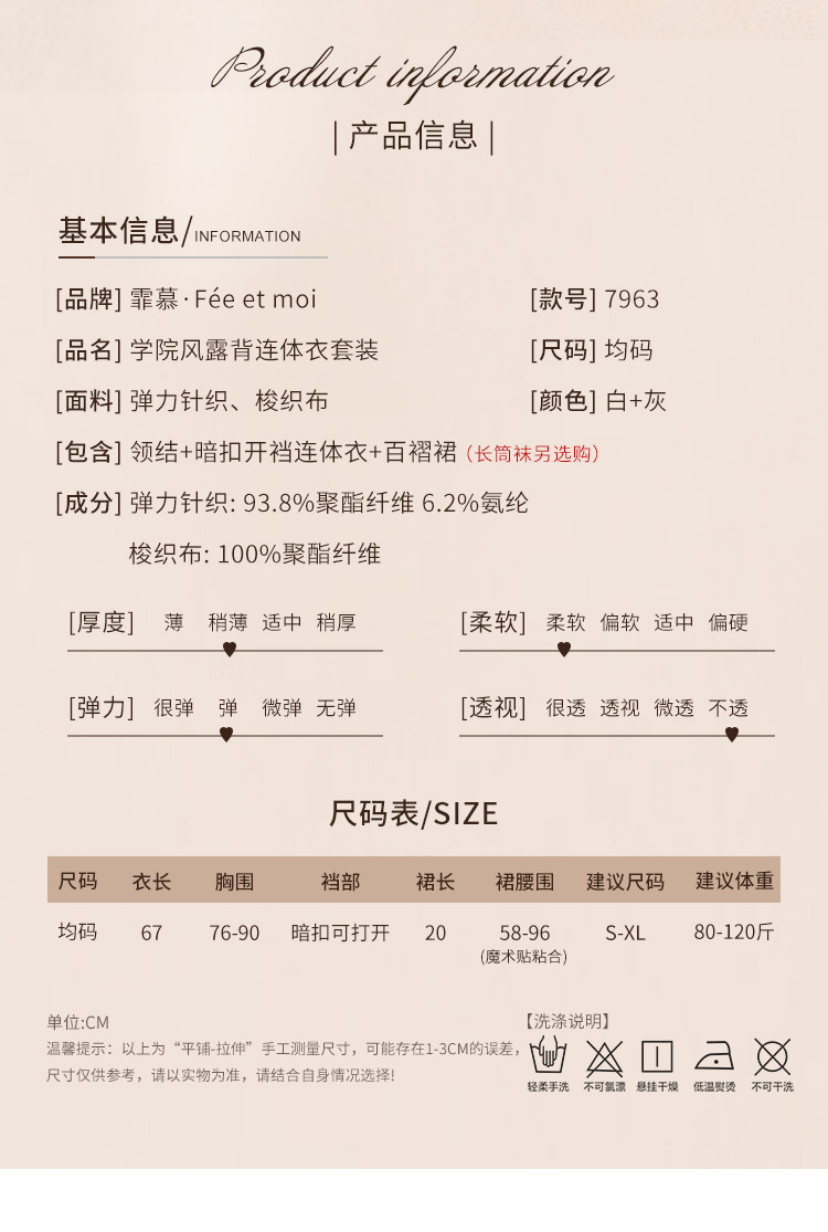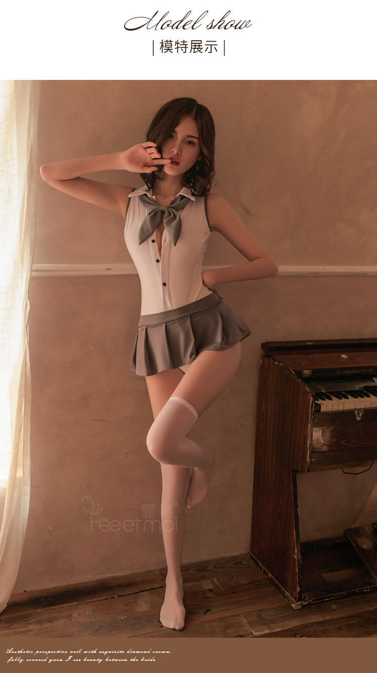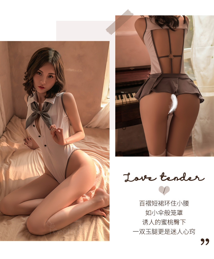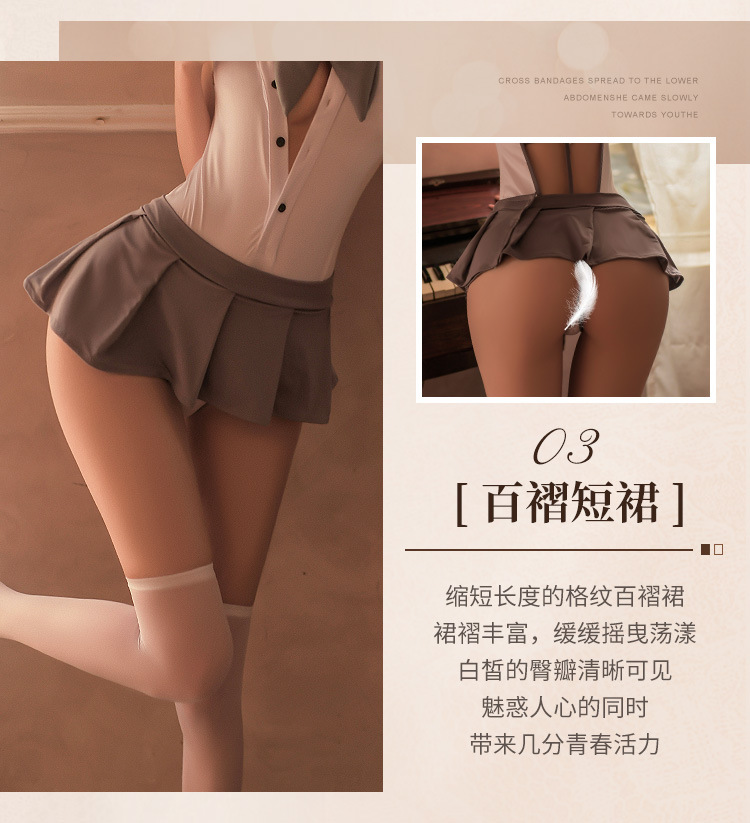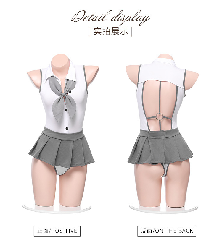 学院风露背连体衣JK制服 清纯领结 百褶短裙