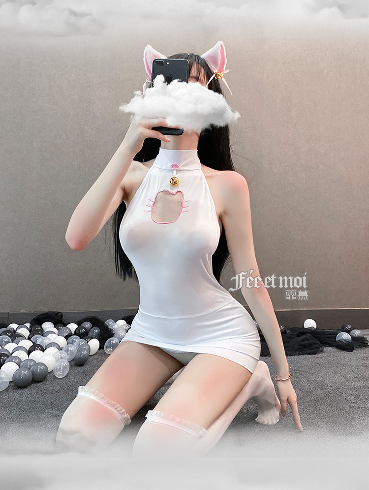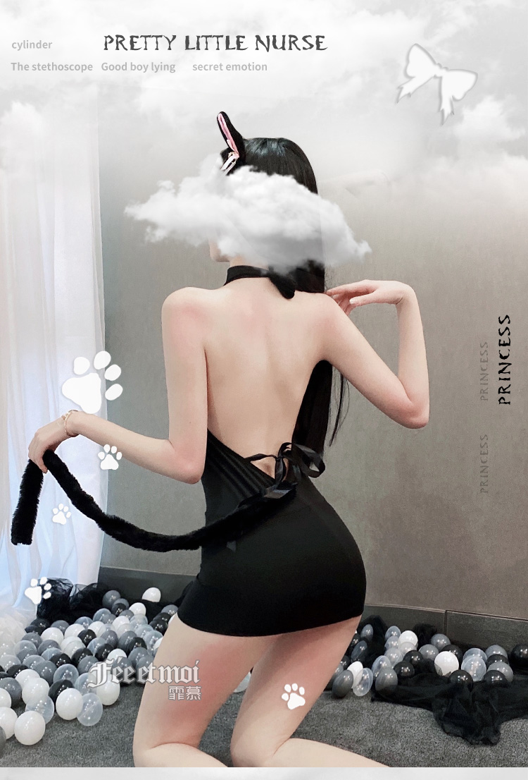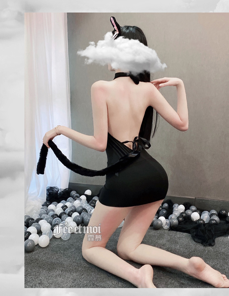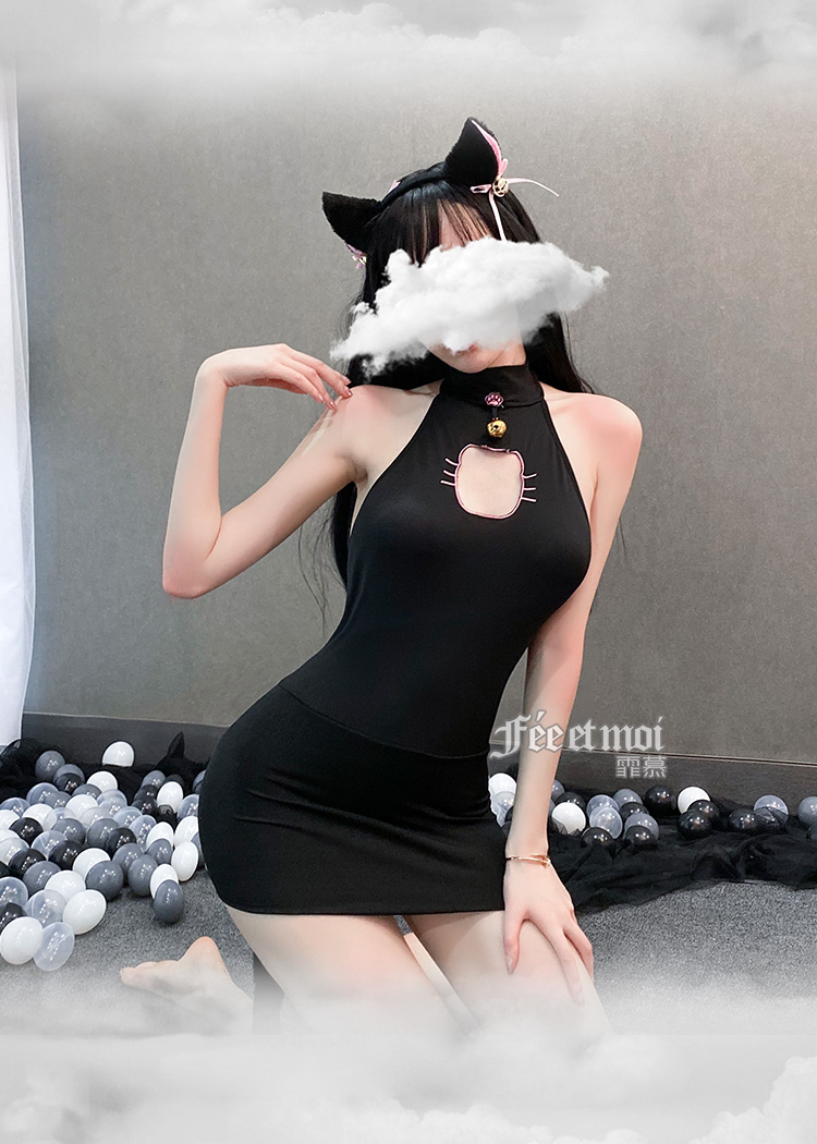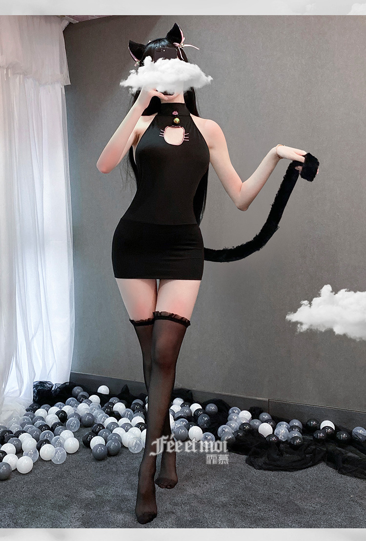调皮可爱猫咪套装 铃铛领结 胸部猫形挖空