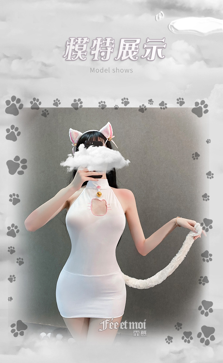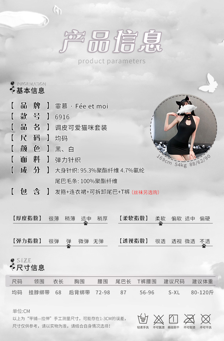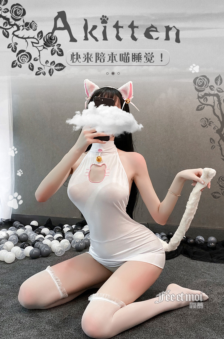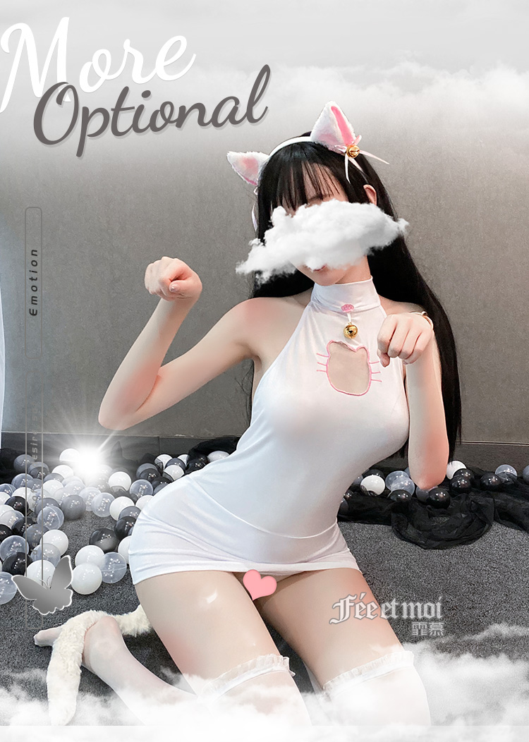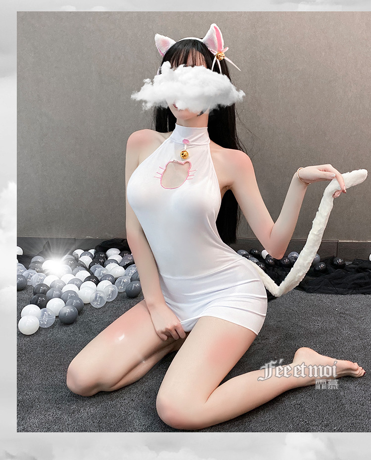 调皮可爱猫咪套装 铃铛领结 胸部猫形挖空
