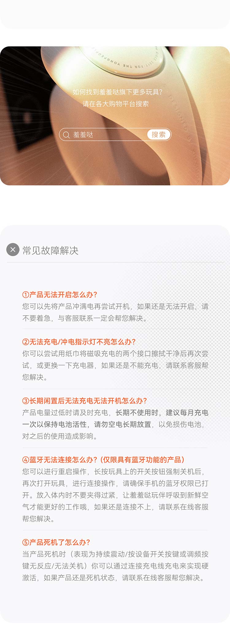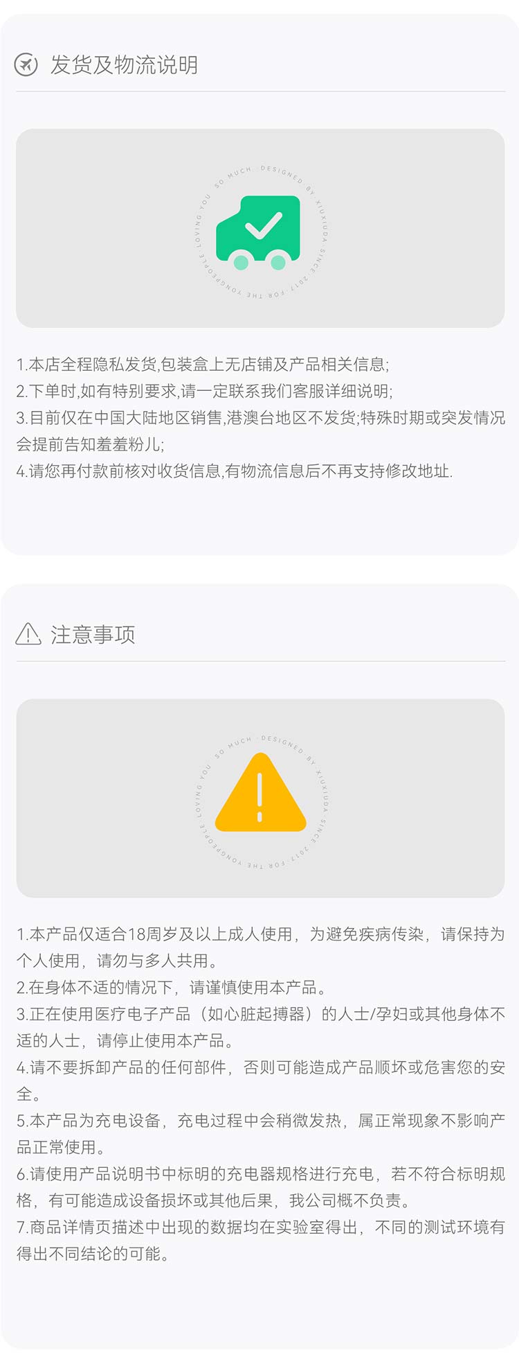 因为专注,所以信赖!先验货后签收,付款方式多样化,七天无理由退货,退货免运费,15天内包换货,换货运费自理。7*15小时超长时间服务。凭借独一无二的专注和前所未有的偏执,为您打造最值得信赖的情趣正品售后服务体验。