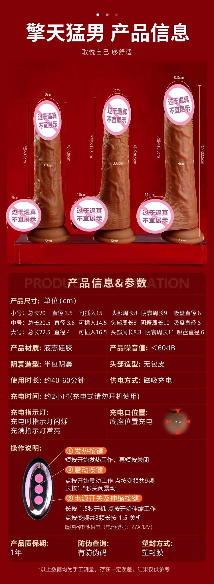 对我来说挺粗长的,吸盘很给力!再加上震动很给力很猛,这款宝贝玩起来简直让人欲罢不能啊~~