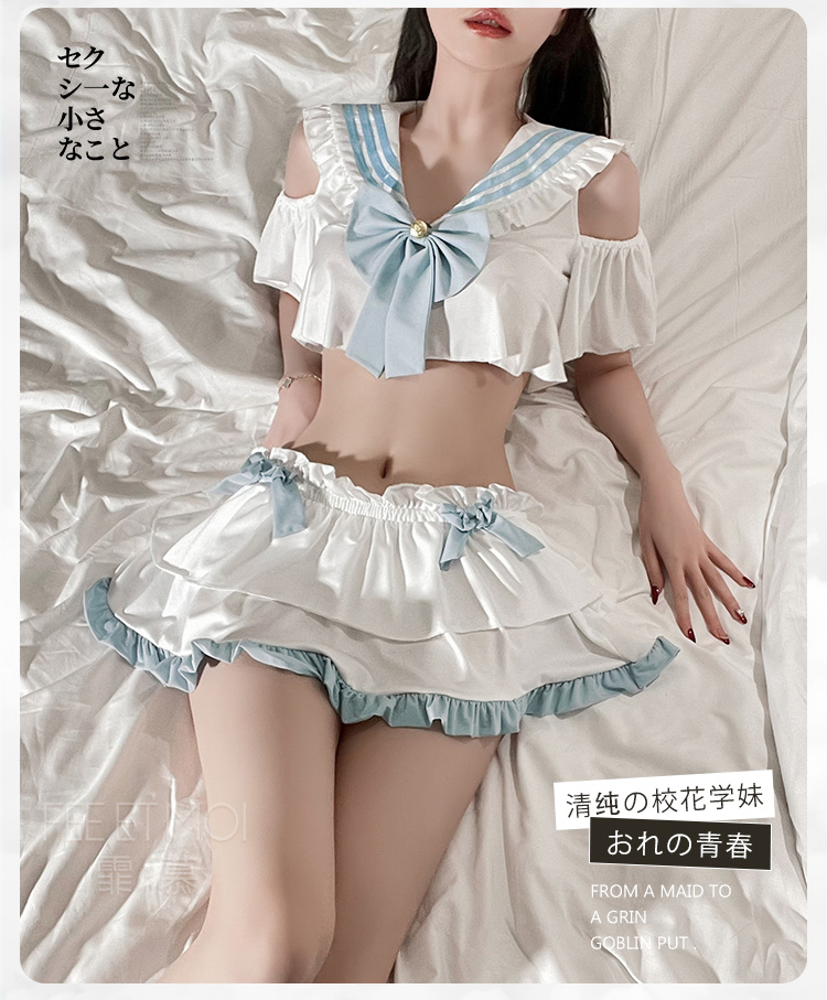 情趣商城 >  情趣内衣  >  制服诱惑  >  挖空露肩纯欲学院风套装 蝴蝶领结 双层花边裙